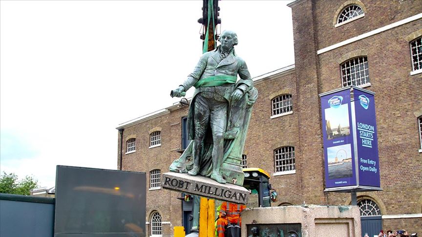 В Лондоне по требованию общественности организовано снесли памятник владельцу Вест-Индийской Компании и работорговцу Роберту Миллигану.