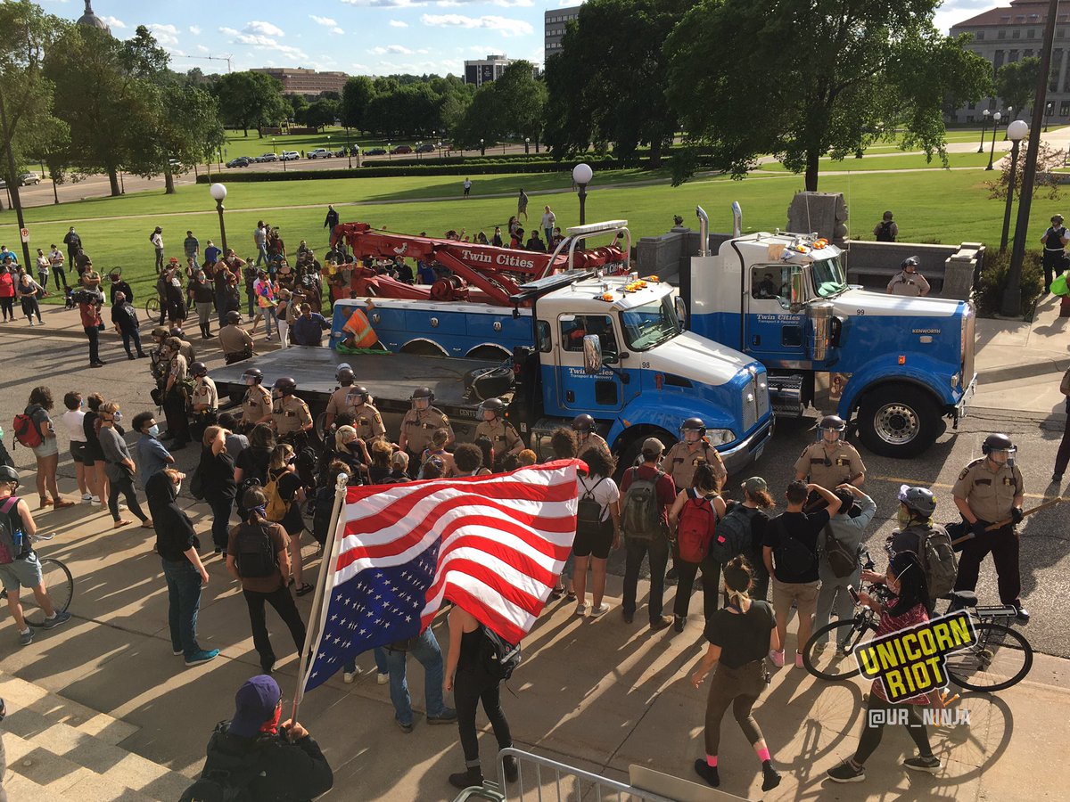 В Сент-Поле (столица штата Миннесота) протестующие снесли памятник Колумбу у местного Капитолия. Полиция сносу не препятствовала, обеспечив лишь вывоз упавшей статуи.