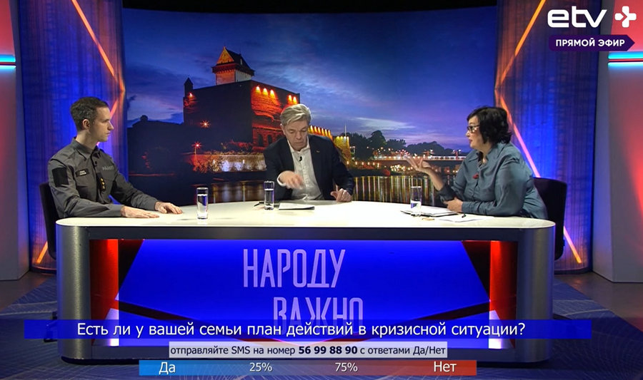 Для детального разбора ситуации и предоставления четких инструкций в студию были приглашены ответственные лица, курирующие вопросы безопасности. Свою позицию по вопросам гражданской обороны представили руководитель спасательной команды Денис Душкин и мэр города Нарва Катри Райк, которая в силу своих полномочий также возглавляет местную кризисную комиссию. Под руководством ведущего, которым выступил Юрий Николаев, участники встречи попытались сформировать понимание того, как должна работать система оповещения и взаимодействия между службами спасения и муниципальным руководством.
