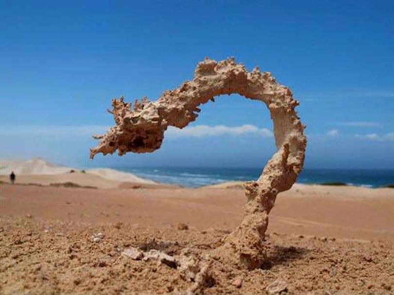 Часто аккуратно выкопанный из песка фульгурит по форме напоминает корень дерева или ветвь с многочисленными отростками. Такие ветвистые фульгуриты образуются, когда разряд молнии попадает во влажный песок, который, как известно, имеет бо́льшую электропроводность, чем сухой. В этих случаях ток молнии, входя в почву, сразу начинает растекаться в стороны, образуя структуру, похожую на корень дерева, а рождающийся при этом фульгурит лишь повторяет эту форму. Фульгурит очень хрупок, и попытки очистить от прилипшего песка нередко приводят к его разрушению. Особенно это относится к ветвистым фульгуритам, образовавшимся во влажном песке.