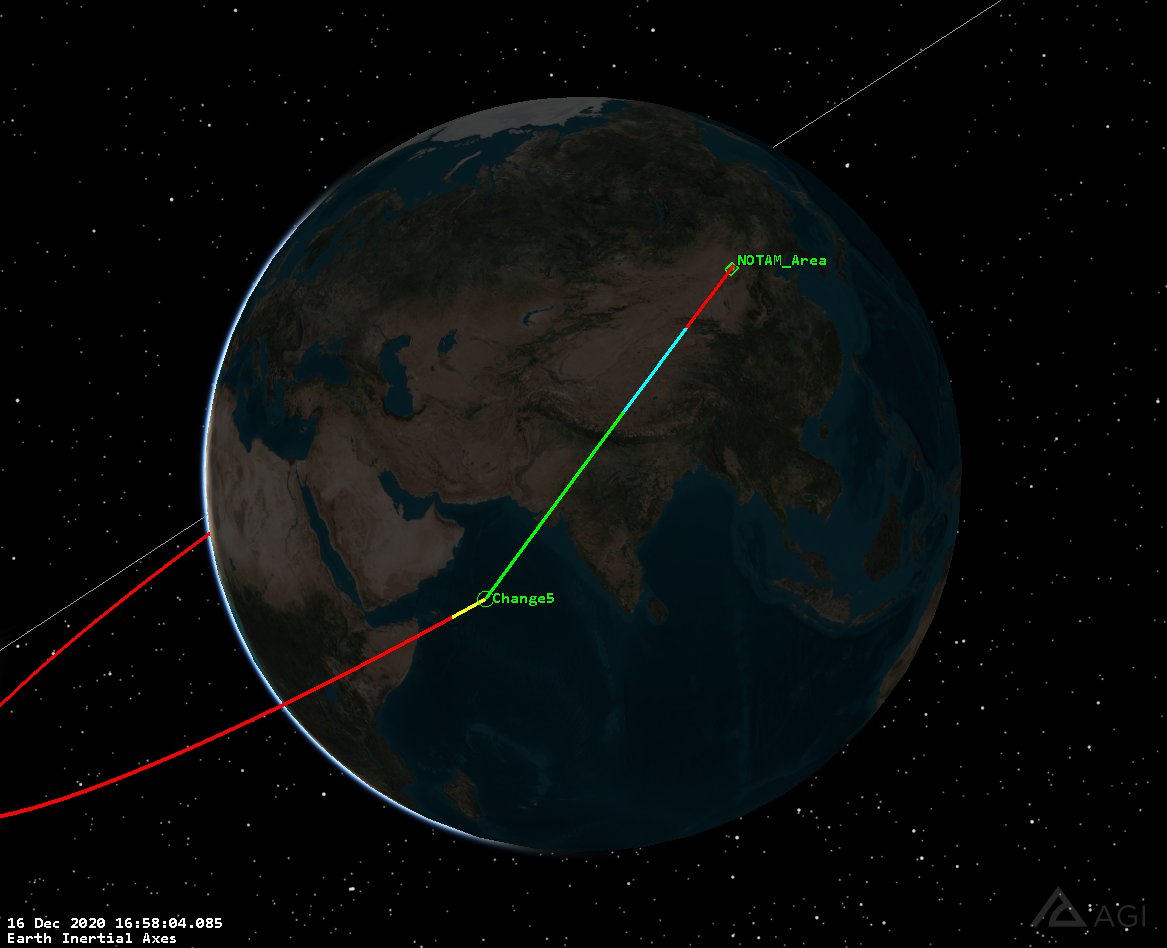 «Чанъэ-5» был запущен 23 ноября. 1 декабря отделившаяся от его орбитального зонда связка из спускаемого и взлетного модуля прилунилась к востоку от Пика Рюмкера — относительно молодой вулканической формации, сформировавшейся примерно 1.3 млрд лет тому назад. Район посадки был намеренно выбран таким образом, чтобы «Чанъэ-5» получил возможность собрать намного более молодые образцы лунного вещества, чем те, которые были доставлены экспедициями «Аполлонов» и советскими станциями «Луна».