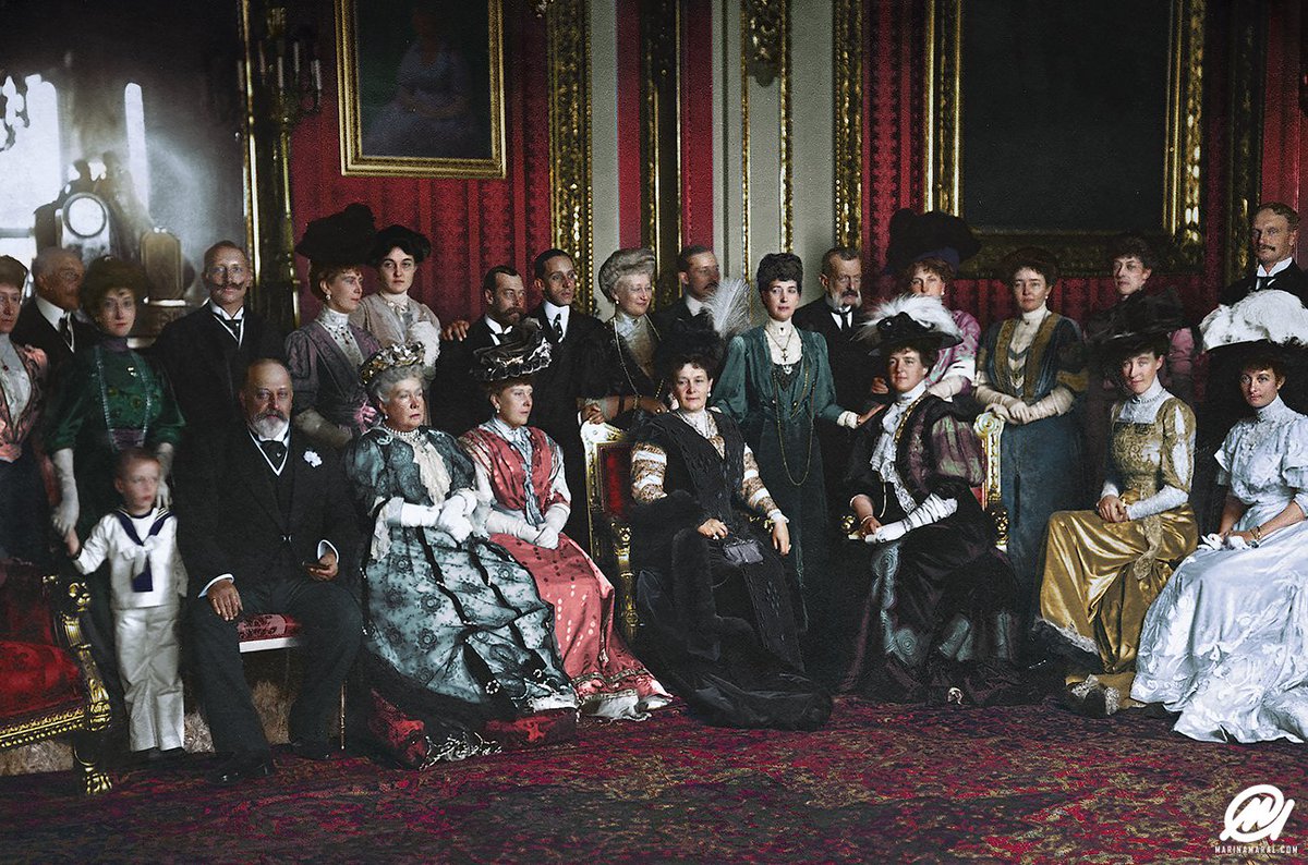 Кайзер Вильгельм II и король Эдуард VII с родственниками. Виндзорский замок. 1907-й.