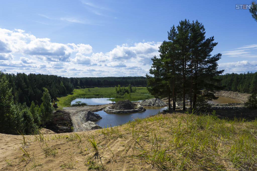 Карьер был заброшен как не перспективный ещё в 60-70х.Он стоял затопленный до конца 70х.В 1979 Нарвский строительный трест попытался реанимировать его ,под дорогой был сделан прокол,воду спустили в Нарову.Но быстро забросили,на снимках видно,что песка жёлтого чистого ниже нет а есть какой то лёсс белого цвета.В середине 90х вторая попытка НКСМ пытался использовать этот песок в замен российского с Фосфорита ,то же не пошло.Нордекон же грозится поднять на гора за 10лет...аж...160тыс.тонн. И причём обязуется выполнить план десятилетки,досрочно,за 2-3года...........