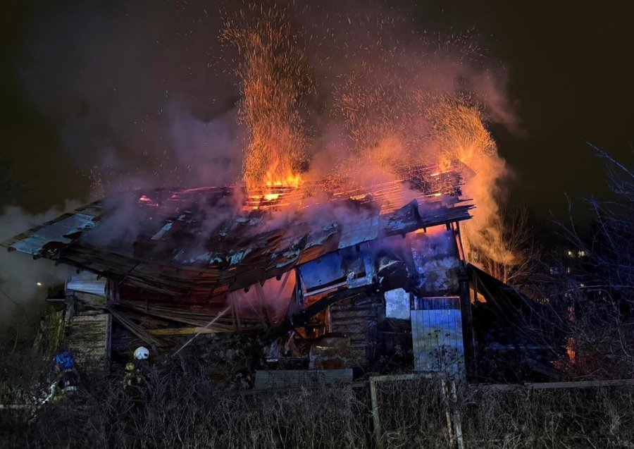 Сигнал о возгорании строения на улице Рохелине поступил в Центр тревоги в 20:29, согласно данным Спасательного департамента. Когда пожарные расчеты прибыли на место происшествия, двухэтажное здание, имеющее площадь около 60 квадратных метров, было полностью объято огнем, а пламя вырывалось наружу через оконные проемы.